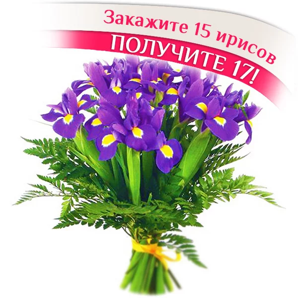 17 ирисов: ирисы - 17 шт, декоративная зелень, сетка.